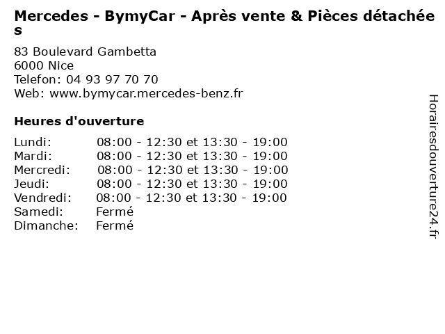 | Mercredi | 08:00-12:30 et 13:30-19:00 |