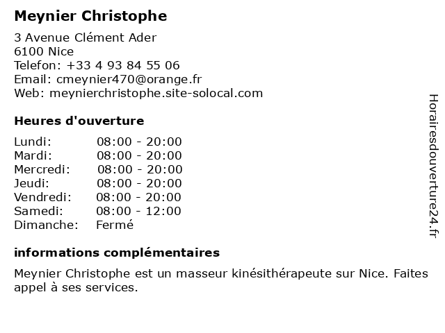 1 Dr Isabelle Leger Meynier - Pédiatre (Distance: 0,01 km) 3 Avenue Clément Ader, 06100 Nice docteur, dr, generaliste, isabelle, leger, medical, meynier, pédiatre, soin 2 Boidard Christophe Rene Henri (Distance: 1,45 km) 23 Boulevard De Cimiez, 06000 Nice bailleurs, biens, boidard, christophe, henri, immobiliers, nra, rene 3 Maître Christophe Nani - Avocat (Distance: 1,86 km) 34 Rue Verdi, 06000 Nice avocat, avocate, avocats, christophe, civils, droits, juridiques, maître, nani 4 Christophe Chambon - Ostéopathe - secretariat (Distance: 2,00 km) 40 Boulevard Victor Hugo,, 06000 Nice chambon, christophe, médecin, médecine, médical, ostéopathe, pharmaceutique, secretariat, traitement 5 Dr Christophe Bonnin - Angiologue- Secretariat (Distance: 2,30 km) 12 Rue de France, 06000 Nice angiologue, bonnin, cabinet, christophe, dr, medical, secretariat, traitements, vasculaires 6 Dr. Christophe Caumel - Dentiste (Distance: 5,34 km) 22 Boulevard Rene Cassin, 06200 Nice caumel, christophe, dentiste, docteur, dr., medecins, sante |