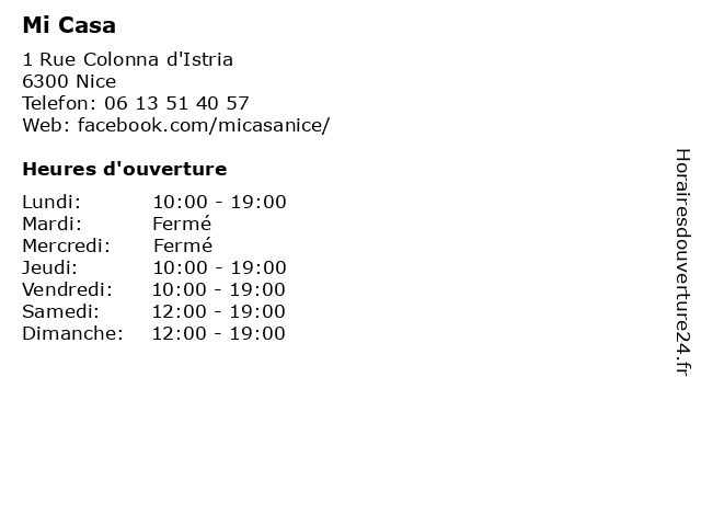 1 Mi Casa Restaurant (Distance: 0,01 km) 4 Ruelle de la Boucherie, 06300 Nice argentin, café, casa, déjeuner, mi, petit-déjeuner, restaurant, restauration, tapas 2 Deli Banh Mi (Distance: 0,44 km) 30 Rue de l'Hôtel des Postes, 06000 Nice banh, bar, bistro, bistrot, brasserie, café, deli, dli, mi, restaurant, restauration 3 Banh Mi Nha Que (Distance: 1,06 km) 8 Rue De Suisse, 06000 Nice banh, café, lili, mi, nha, que, restaurants, secrets 4 Mi-Am (Distance: 1,27 km) 9 Avenue Thiers, 06000 Nice am, asiatique, boissons, dessert, fondue, mi, restaurant, soupe, vermicelle 6 Mi Chat Mi Chien (Distance: 1,97 km) 24 Boulevard Joseph Garnier, 06000 Nice animaux, chat, chats, chien, chiens, mi, toilettage |