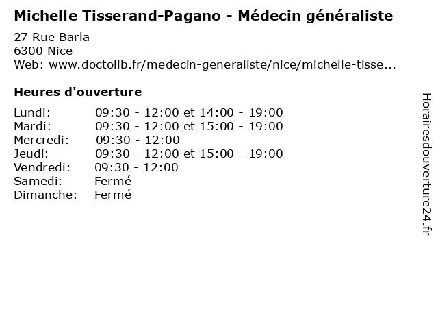 | Mardi | 09:30-12:00 et 15:00-19:00 |