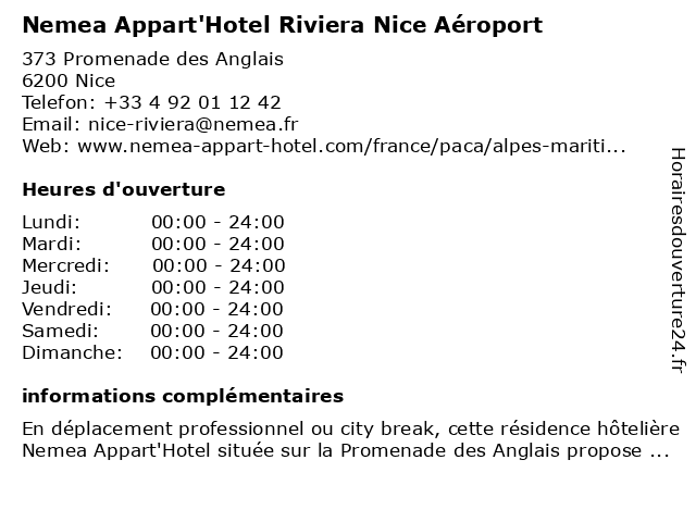 1 Nemea Appart'Hotel Riviera Nice Aéroport (Distance: 0,01 km) 32 Avenue du Capitaine Ferber, 06200 Nice appart'hotel, appartement, appartement meublé, aéroport, city break, déplacement professionnel, logement côte d'azur, logement nice, nemea, nice, riviera, résidence hôtelière, salle de sport, voyage d'affaires 2 Hotel de Flore Nice Promenade (Distance: 4,51 km) 2 Rue Maccarani, 06000 Nice cafe, de, flore, hotel, nice, promenade, restaurant, service 3 Hotel Régence (Distance: 4,60 km) 21 Rue Massena, 06000 Nice cafe, hotel, restaurant, régence, service 4 Hotel Massena (Distance: 4,99 km) 58 Rue Gioffredo, 06000 Nice bar, chambres, hotel, massena, restaurant 5 Hotel La Perouse (Distance: 5,25 km) 11 Quai Rauba Capeu, 06300 Nice bar, chambres, hotel, la, perouse, restaurant 6 B&B Hotel Villeneuve Loubet Plage (Distance: 8,18 km) 1810 Route Departementale 6007, 06270 Villeneuve-Loubet b&b, bar, cafe, hotel, loubet, plage, restaurant, service, villeneuve |