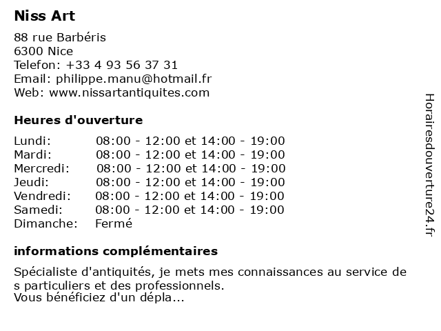 | Lundi | 08:00-12:00 et 14:00-19:00 |