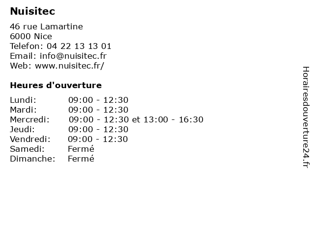 | Mercredi | 09:00-12:30 et 13:00-16:30 |