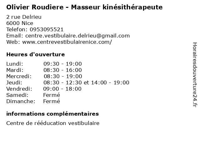 | Jeudi | 08:30-12:30 et 14:00-19:00 |