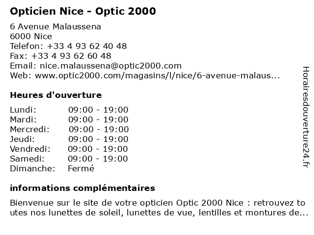 1 Opticien Nice - Optic 2000 (Distance: 1,13 km) 8 Rue de France, 06000 Nice 2000, lentilles de contact, lunettes de soleil, lunettes de vue, nice, optic, optic2000, opticien, opticien optic2000, ray-ban, rayban 2 Opticien Nice - Optic 2000 (Distance: 1,47 km) 23 Avenue de la République, 06300 Nice 2000, lentilles de contact, lunettes de soleil, lunettes de vue, nice, optic, optic2000, opticien, opticien optic2000, ray-ban, rayban 3 Opticien Nice - Optic 2000 (Distance: 2,82 km) 170 Route de Turin, 06300 Nice 2000, lentilles de contact, lunettes de soleil, lunettes de vue, nice, optic, optic2000, opticien, opticien optic2000, ray-ban, rayban 4 Opticien Nice - Optic 2000 (Distance: 4,22 km) 79 Boulevard de l'Ariane, 06300 Nice 2000, lentilles de contact, lunettes de soleil, lunettes de vue, nice, optic, optic 2000, opticien, ray-ban 5 Audioprothésiste Nice - Malaussena - Audio 2000 (Distance: 0,02 km) 6 Avenue Malaussena, 06000 Nice 2000, audio, audio2000, audioprothésiste, audioprothésiste nice, malaussena, nice 6 Assu 2000 (Distance: 0,02 km) 7 Avenue Malaussena, 06000 Nice 2000, assu, assurance, maison, moto, santé, services |
