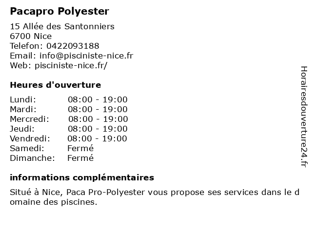| Lundi | 08:00-19:00 |