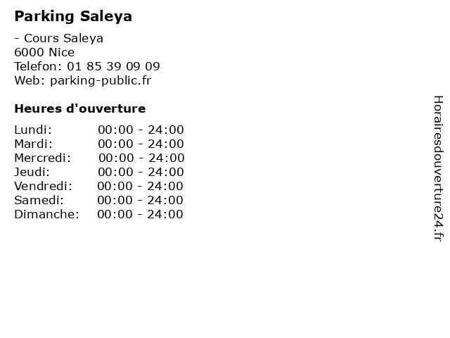 2 Parking Indigo Nice Saleya (Distance: 0,14 km) 36 Cours Saleya, 06300 Nice borne de recharge pour véhicules électriques, indigo, nice, parking, saleya 4 Onepark / Saleya Parking (Distance: 0,21 km) 1 Rue saint François de Paule, 06300 Nice onepark, parking, saleya, services 5 Crédit Agricole Agence de Nice Saleya (Distance: 0,22 km) 2 Rue Saint-François de Paule, 06300 Nice agence, agricole, crédit, de, nice, saleya 6 Onepark / Marshall Parking (Distance: 0,77 km) - Place du Général Marshall,, 06000 Nice marshall, onepark, parking, services |