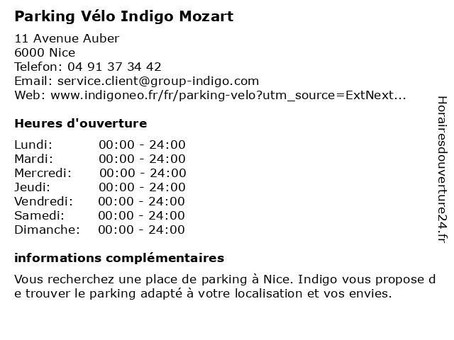 1 Onepark / Mozart Parking (Distance: 0,01 km) 11 Avenue Auber, 06000 Nice mozart, onepark, parking, services 2 Vélobleu - Station de Vélo (Distance: 0,24 km) - Rue Rossini, 06000 Nice de, libre, service, station, vélo, vélobleu 3 Vélobleu - Station de Vélo (Distance: 0,51 km) - Boulevard Victor Hugo, 06000 Nice de, libre, service, station, vélo, vélobleu 4 Vélobleu - Station de Vélo (Distance: 0,56 km) - Avenue Thiers, 06000 Nice de, libre, service, station, vélo, vélobleu 5 Vélobleu - Station de Vélo (Distance: 0,60 km) - Rue du Congrès, 06000 Nice de, libre, service, station, vélo, vélobleu 6 Vélobleu - Station de Vélo (Distance: 0,61 km) - Rue Meyerbeer, 06000 Nice de, libre, service, station, vélo, vélobleu |