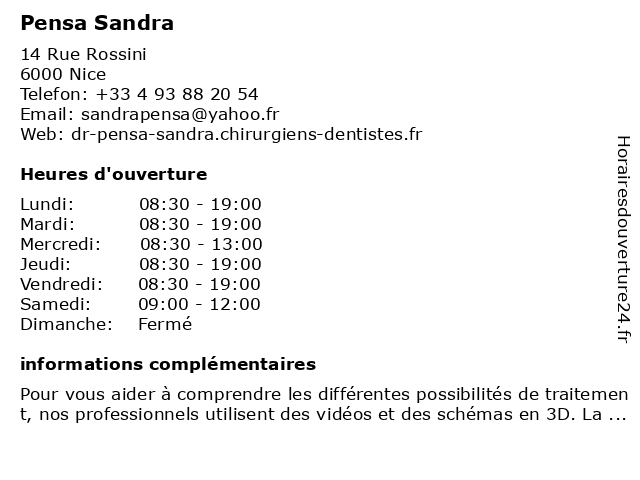 1 Maître Mireille Pensa-Bezzina - Avocate (Distance: 0,38 km) 28 rue Alphonse Karr, 06000 Nice avocate, avocats, bezzina, civils, droits, juridiques, maître, mireille, pensa 3 Sandra Tiachetine-El Houki - Sage-femme (Distance: 2,13 km) 57 Avenue de la Californie, 06200 Nice consultation, docteur, dr, el, femme, houki, med, médecin, sage, sandra, tiachetine, traitement 5 Kasterine Sandra (Distance: 11,18 km) N 4 La Roseyre La Pointe, 06390 Contes catalogue, correspondance, kasterine, maisons, sandra, vente 6 Sandra Schuh - Psychologue (Distance: 12,60 km) 164 Avenue Emile Hugues, 06140 Vence folie, psychiatre, psychiatrie, psychiatrique, psychologue, sandra, schuh |