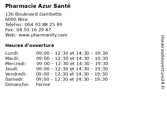 | Samedi | 09:00-12:30 et 14:30-19:30 |