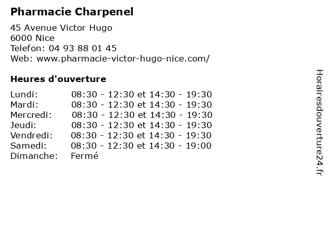 | Lundi | 08:30-12:30 et 14:30-19:30 |