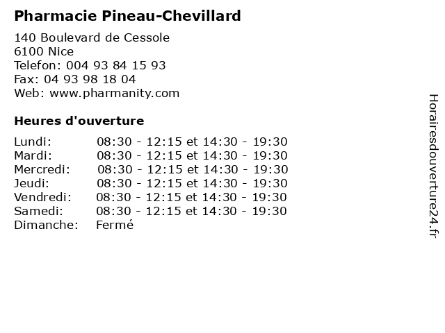 | Samedi | 08:30-12:15 et 14:30-19:30 |