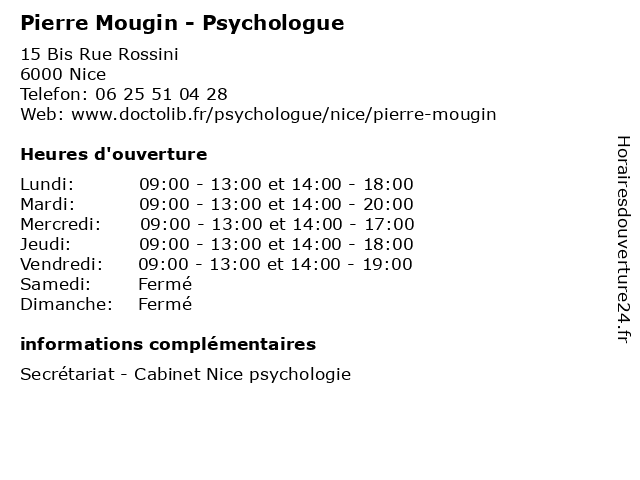 | Mardi | 09:00-13:00 et 14:00-20:00 |