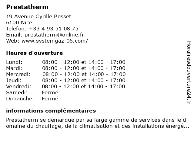 Prestatherm se démarque par sa large gamme de services dans le domaine du chauffage, de la climatisation et des installations énergétiques. Basée dans les Alpes-Maritimes, d'Antibes à Beaulieu...