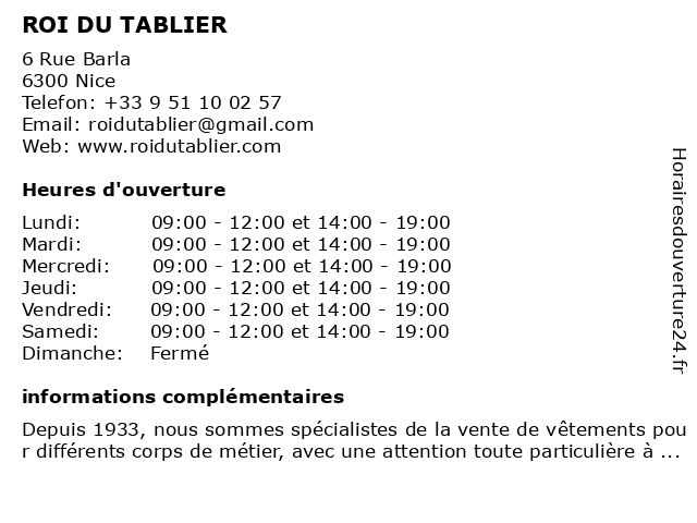 | Samedi | 09:00-12:00 et 14:00-19:00 |