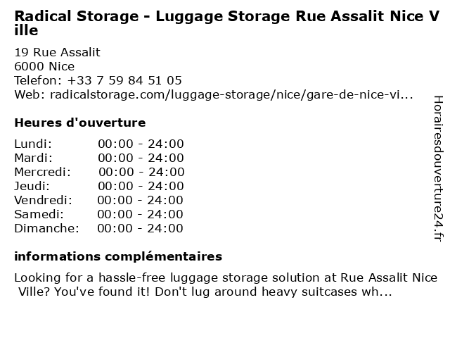 2 Luggage Storage Rue Miron - Radical Storage (Distance: 0,03 km) 12 Rue Miron, 06000 Nice luggage, luggage storage, luggage storage near me, miron, radical, rue, storage 3 Luggage Storage Rue Marceau - Radical Storage (Distance: 0,20 km) 21 Rue Marceau, 06000 Nice luggage, luggage storage, luggage storage near me, marceau, radical, rue, storage 4 Nannybag Luggage Storage (Distance: 0,23 km) 28 Rue D'angleterre, 06000 Nice luggage, nannybag, storage 5 Luggage Storage near Rue Marceau - Radical Storage (Distance: 0,23 km) 14B Rue Marceau, 06000 Nice luggage, luggage storage, luggage storage near me, marceau, near, radical, rue, storage 6 |