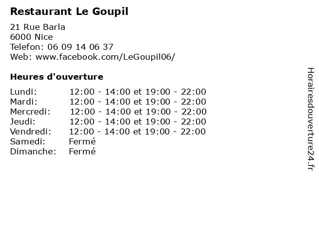 | Jeudi | 12:00-14:00 et 19:00-22:00 |
