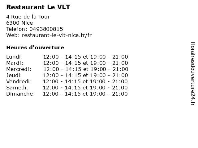 | Mardi | 12:00-14:15 et 19:00-21:00 |