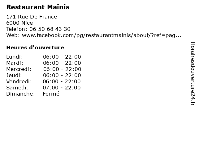 1 Maïnis Restaurant (Distance: nan km) 171 Rue de France, 06600 Nice cuisine, les boissons, maïnis, restaurant, restaurants, restauration 2 Le Clin d’Oeil Restaurant (Distance: 2,05 km) 2 Rue Chauvain, 06000 Nice banquet, bar, clin, d’oeil, le, menu, plats, restaurant, restaurants 3 Restaurant La Flamboyante (Distance: 2,07 km) 47 Rue Gioffredo, 06000 Nice banquet, bar, flamboyante, la, menu, plats, restaurant, restaurants 4 La Rose des Vents (Distance: 2,15 km) 2 Passage Malaussena, 06000 Nice boisson, créole, des, exotique, la, menu, restaurant, rose, tradionnel, vents 5 Basilic & Co (Distance: 2,17 km) 26 Rue Pastorelli, 06000 Nice basilic, co, menu, petite, plats, restaurants 6 Titoeuf Pizza (Distance: 2,36 km) 14 Rue Pastorelli, 06000 Nice menu, pizza, plaisir, plats, restaurant, titoeuf |