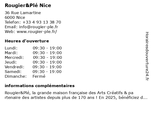 | Dimanche | Fermé |