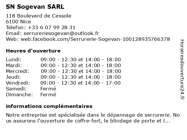 | Lundi | 09:00-12:30 et 14:00-18:00 |
