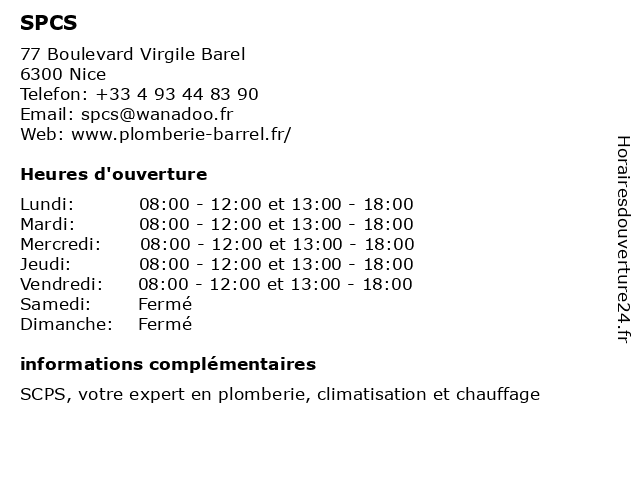| Lundi | 08:00-12:00 et 13:00-18:00 |