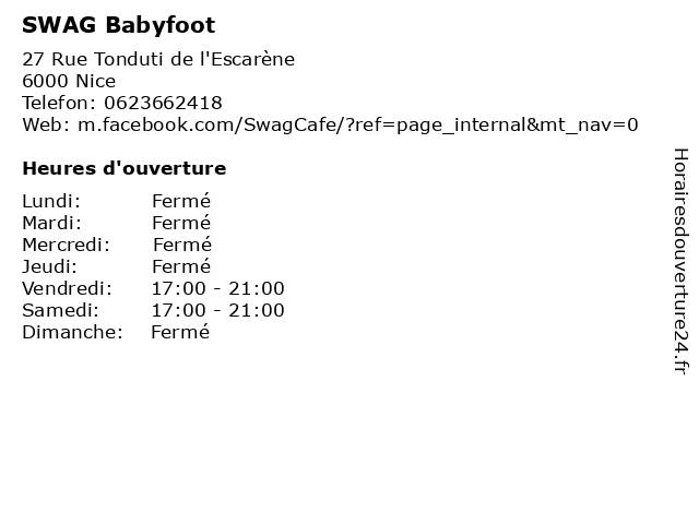 | Lundi | Fermé |