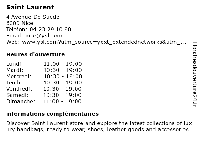 | Vendredi | 10:30-19:00 |