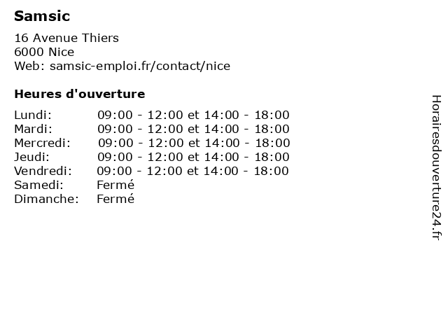 | Mercredi | 09:00-12:00 et 14:00-18:00 |