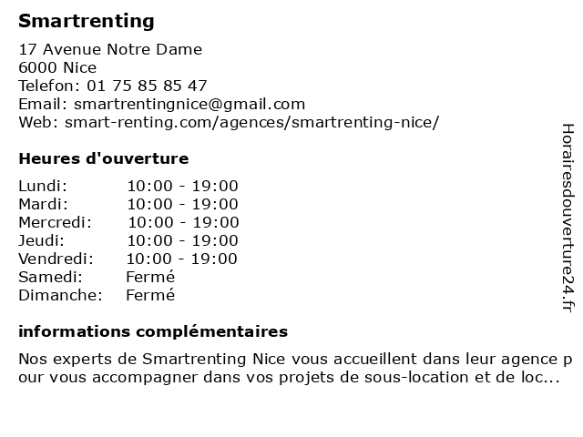 | Lundi | 10:00-19:00 |