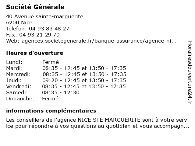 1 Société Générale (Distance: 0,31 km) 78 Boulevard Napoléon III, 06200 Nice agence, devis d'assurance automobile, générale, prêt à domicile, prêt à la consommation, société 2 Société Générale (Distance: 2,89 km) - Avenue Eugène Donadeï, 06700 Saint-Laurent-du-Var assurance, banque, générale, prêt, service, société 3 Société Générale (Distance: 4,22 km) 50 Chemin du val fleuri, 06800 Cagnes sur Mer association d'épargne et de crédit, atm, conseil en crédit, générale, organisme d'assurance auto, organisme d'assurance moto, organisme d'assurance-habitation, organisme d'assurance-vie, société 4 Société Générale (Distance: 4,27 km) 112 Boulevard gambetta, 06000 Nice association d'épargne et de crédit, atm, conseil en crédit, générale, organisme d'assurance auto, organisme d'assurance moto, organisme d'assurance-habitation, organisme d'assurance-vie, société 5 Société Générale (Distance: 4,97 km) 23 Avenue des oliviers, 06800 Cagnes-sur-Mer association d'épargne et de crédit, atm, conseil en crédit, générale, organisme d'assurance auto, organisme d'assurance moto, organisme d'assurance-habitation, organisme d'assurance-vie, société 6 Société Générale (Distance: 5,77 km) 1 Place Alexandre Medecin, 06100 Nice agence, devis d'assurance automobile, générale, prêt à domicile, prêt à la consommation, société |