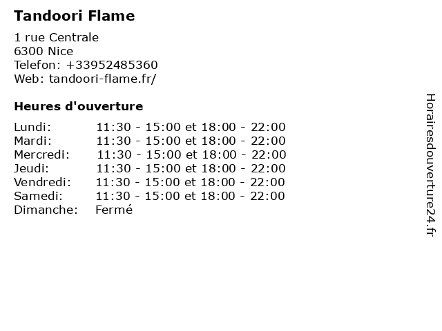 | Samedi | 11:30-15:00 et 18:00-22:00 |