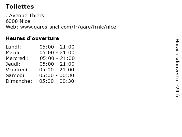 | Dimanche | 05:00-00:30 |