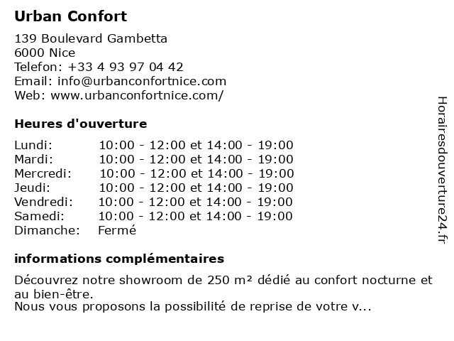 | Samedi | 10:00-12:00 et 14:00-19:00 |