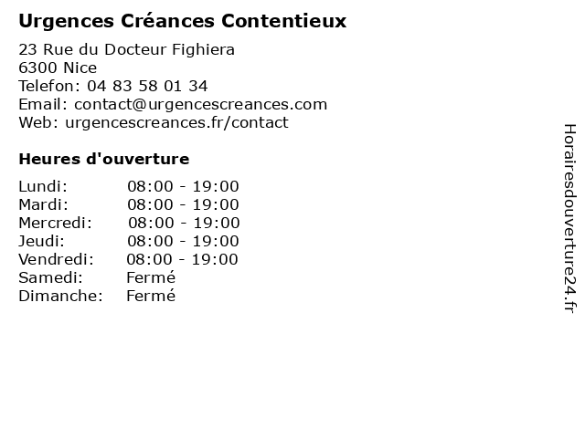 | Lundi | 08:00-19:00 |