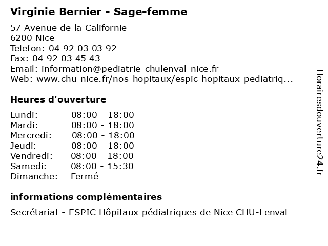 1 Dr Virginie Rocher Rampal - Chirurgien orthopédiste (Distance: 0,00 km) 57 Avenue de la Californie, 06200 Nice chirurgien, consultation, docteur, dr, med, médecin, orthopédiste, rampal, rocher, traitement, virginie 2 Neble Jean-Claude et Giraud Virginie Notaires Associés (Distance: 1,03 km) 196 Avenue de la Californie, 06200 Nice associés, claude, et, giraud, jean, neble, notaires, virginie 3 Virginie Carlo Sifi - Psychologue (Distance: 1,21 km) 151 Route de Saint-Antoine, 06200 Nice carlo, médecins, médicaments, psychologue, santé, secrétariat, sifi, spécialiste, virginie 4 Virginie Schmitt - Sage-femme (Distance: 1,21 km) 151 Route de Saint-Antoine, 06200 Nice consultation, docteur, femme, med, médecin, médecine, sage, schmitt, traitement, virginie 5 Virginie Duboille - Sage-femme (Distance: 1,21 km) 151 Route de Saint-Antoine, 06200 Nice consultation, docteur, duboille, femme, med, médecin, médecine, sage, traitement, virginie 6 Virginie Fischer - Sophrologue (Distance: 1,92 km) 4 Avenue Suzanne Lenglen, 06000 Nice fischer, medecin, sante, sophro, sophrologue, virginie |