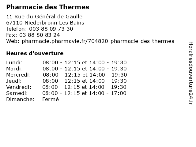 | Jeudi | 08:00-12:15 et 14:00-19:30 |