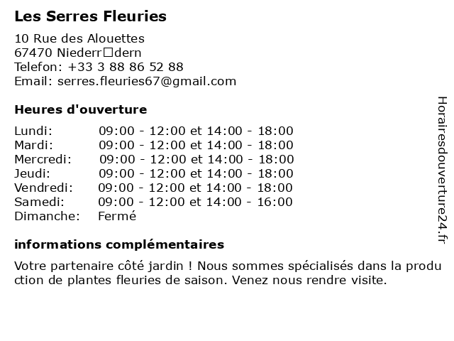 | Lundi | 09:00-12:00 et 14:00-18:00 |