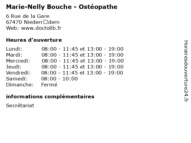 | Lundi | 08:00-11:45 et 13:00-19:00 |