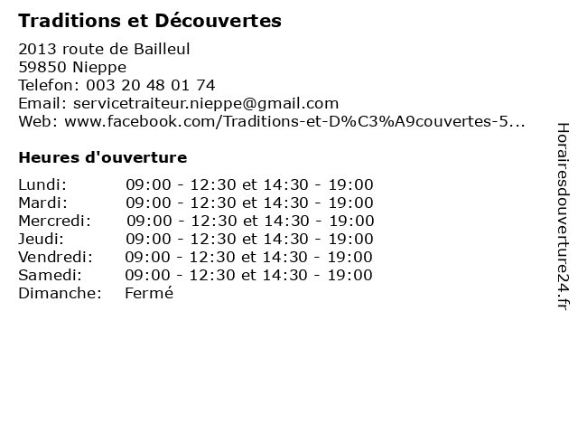 | Samedi | 09:00-12:30 et 14:30-19:00 |