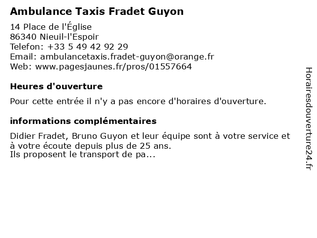 | Appeler Ambulance Taxis Fradet Guyon | |