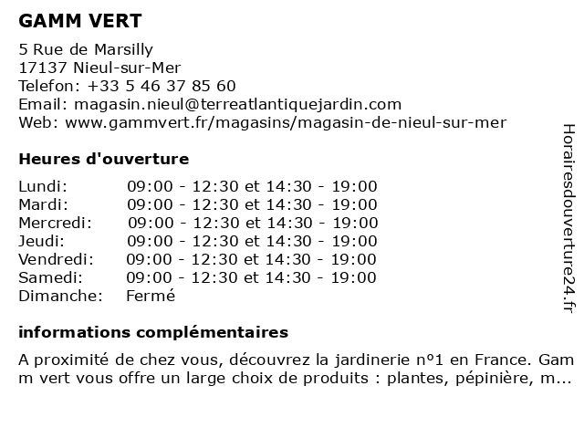 Lundi | 09:00-12:30 et 14:30-19:00 |