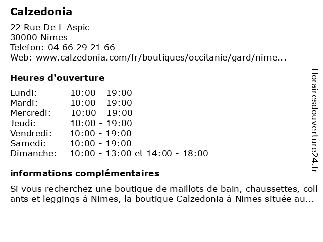 1 Calzedonia (Distance: 2,69 km) 400 Avenue Du Dr Claude Baillet Cc Cap Costieres, 30918 Nimes Cedex 2 calzedonia, magasin de maillots de bain 2 Coeur D'Amazone (Distance: 0,15 km) 11 Rue du Chapitre, 30000 Nîmes cancer femme, coeur, d'amazone, lingerie, maillot de bain, maquillage cosmetique, produits suite cancer, protheses capillaire 3 Charl'ine Lingerie (Distance: 0,18 km) 1 rue de la Madeleine, 30000 Nimes bain, boutique, charl', charl'ine, dessous, femme, ine, lingerie, nuisette 4 Linvosges (Distance: 0,25 km) 3, rue du Général Perrier, 30000 Nîmes deco, la chambre, la salle de bain, la table, les enfants, les vetements, linvosges, maison 5 New Yorker (Distance: 0,41 km) 22 Boulevard Gambetta, 30189 Nîmes magasin de lingerie, magasin de maillots de bain, magasin de vêtements de sport, magasin de vêtements pour femmes, magasin de vêtements pour hommes, magasin d’accessoires de mode, new, yorker 6 |