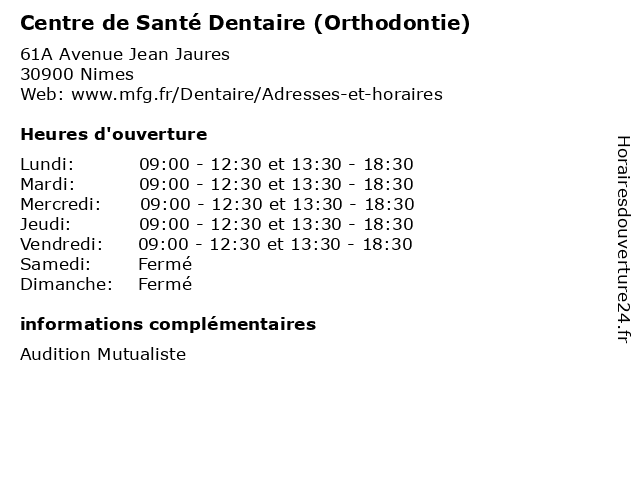 1 Centre de Santé Dentaire (Distance: 0,00 km) 61A Avenue Jean Jaures, 30900 Nimes assurance, centre, de, dentaire, sante, santé, services 2 Centre de santé Dentaire Clinadent Nîmes (Distance: 0,35 km) 64 Avenue Jean Jaurès, 30900 Nîmes centre, clinadent, de, dentaire, nîmes, santé 3 Centre de Santé Dentaire (Distance: 1,22 km) 7B Avenue De La Mediterranee, 30000 Nimes assurance, centre, de, dentaire, sante, santé, services 4 Centre de Santé Dentaire Mutualiste (Distance: 1,22 km) 7A Avenue de la Méditerranée, 30000 Nimes centre, de, dentaire, docteur, medecins, mutualiste, sante, santé 6 Dentego - Centre dentaire (Distance: 1,35 km) 20 Boulevard Amiral Courbet, 30000 Nîmes centre, consultation, dentaire, dentego, dentiste, dents, soins |
