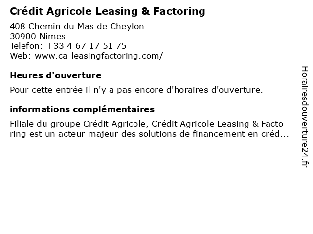 | Appeler Crédit Agricole Leasing & Factoring | |
