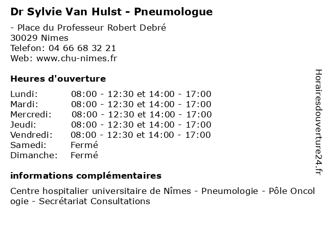 | Vendredi | 08:00-12:30 et 14:00-17:00 |