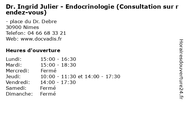 Termes de recherche pour Dr. Ingrid Julier - Endocrinologie (Consultation sur rendez-vous):sur, vous, santé, rendez, ingrid, docteur, dr., consultation, endocrinologie, julier |