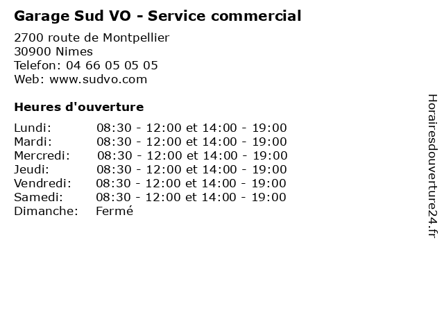 | Samedi | 08:30-12:00 et 14:00-19:00 |