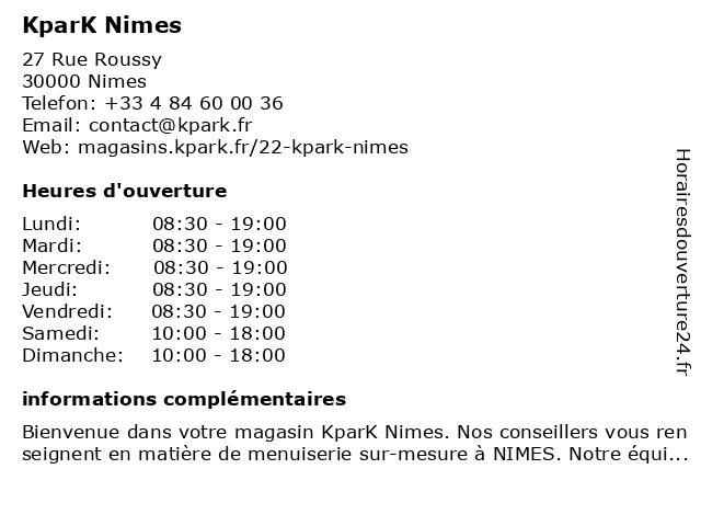 1 Centre technique KparK Nîmes (Distance: 5,14 km) Route d'Avignon, 30000 Nîmes centre, kpark, nîmes, technique 2 KparK Montpellier Est (Distance: 32,61 km) 333 Avenue de Nîmes, 34670 Saint-Brès est, kpark, montpellier 4 KparK Energies Montfavet (Distance: 40,57 km) 1 Chemin de Saint-Ange, 84140 Avignon energies, kpark, montfavet 6 |