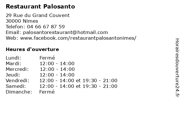 | Samedi | 12:00-14:00 et 19:30-21:00 |
